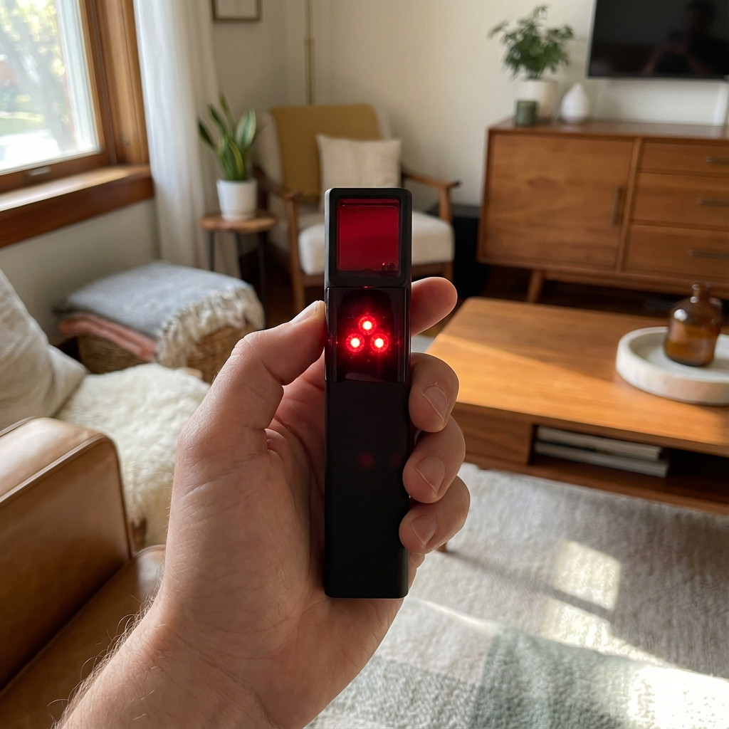 The scanner identifies camera lenses and wireless signals commonly used in hidden cameras, even when they’re disguised or inactive. A quick sweep of the room helps reveal devices that don’t belong, without tearing the space apart or relying on apps.